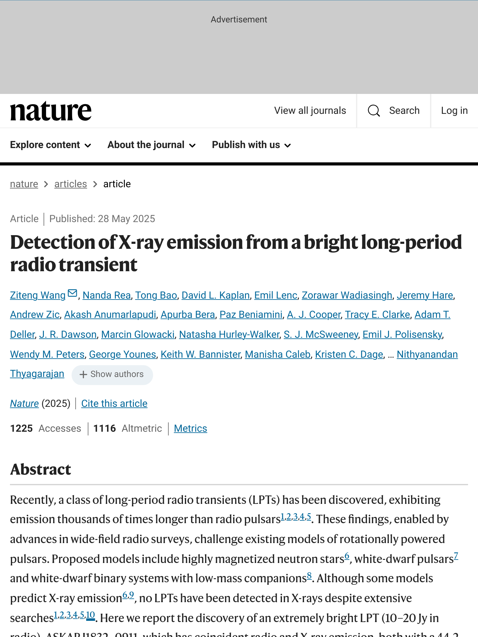 Nature研究论文 | 探测到来自明亮长周期射电瞬变体的X射线辐射 grit 发布于 2025-06-03 15 次阅读 该研究报告探测到来自一个明亮长周期射电瞬变体的X射线辐射。研究结果有助于进一步理解这类天体物理现象的物理机制。发表于 2025年06月02日 原文链接:https://go.nature.com/43D04M2