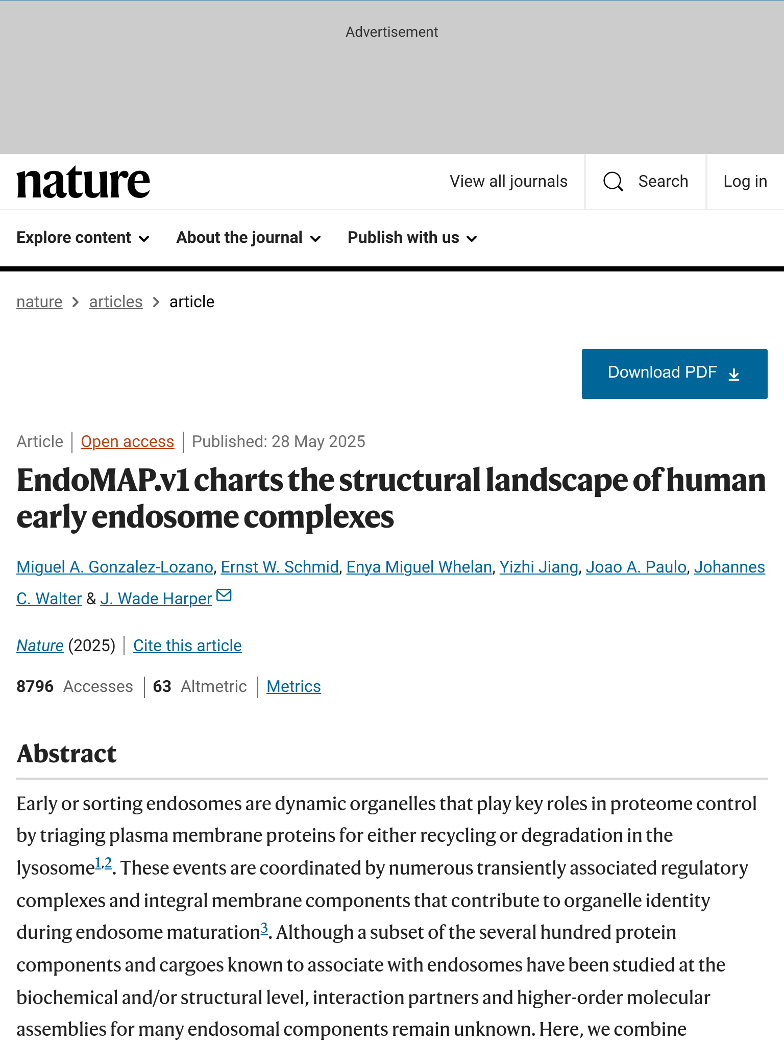 该研究利用EndoMAP.v1平台,详细描述了人类早期内体复合物的结构。这项研究为深入理解内体功能和相关疾病提供了重要的结构基础。发表于2025年6月4日