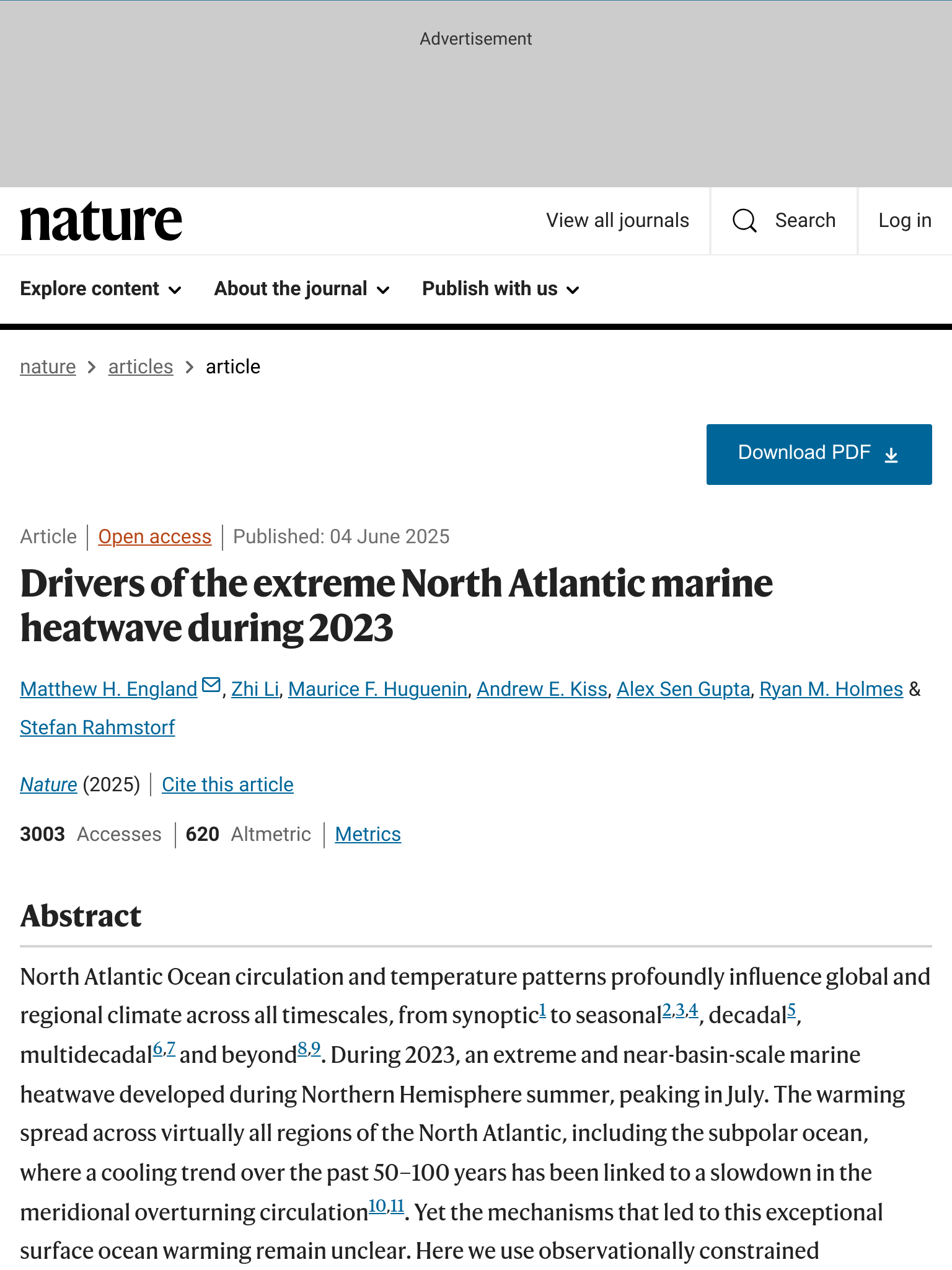 该研究论文分析了2023年极端北大西洋海洋热浪事件的驱动机制。研究人员探究了气候变化及其他因素对该事件的影响。结果或将为预测未来类似事件提供重要参考。发表于 2025年06月06日